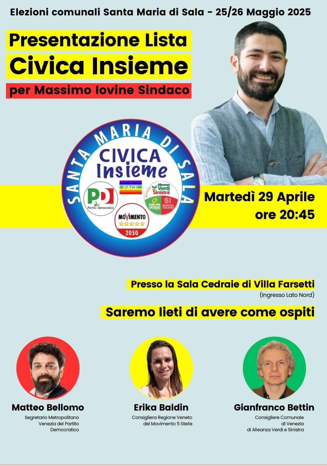 Martedì 29 aprile, nella sobria cornice della Sala Cedraie di Villa Farsetti, si è tenuta la presentazione della lista Civica Insieme con il nostro candidato sindaco Massimo Iovine.