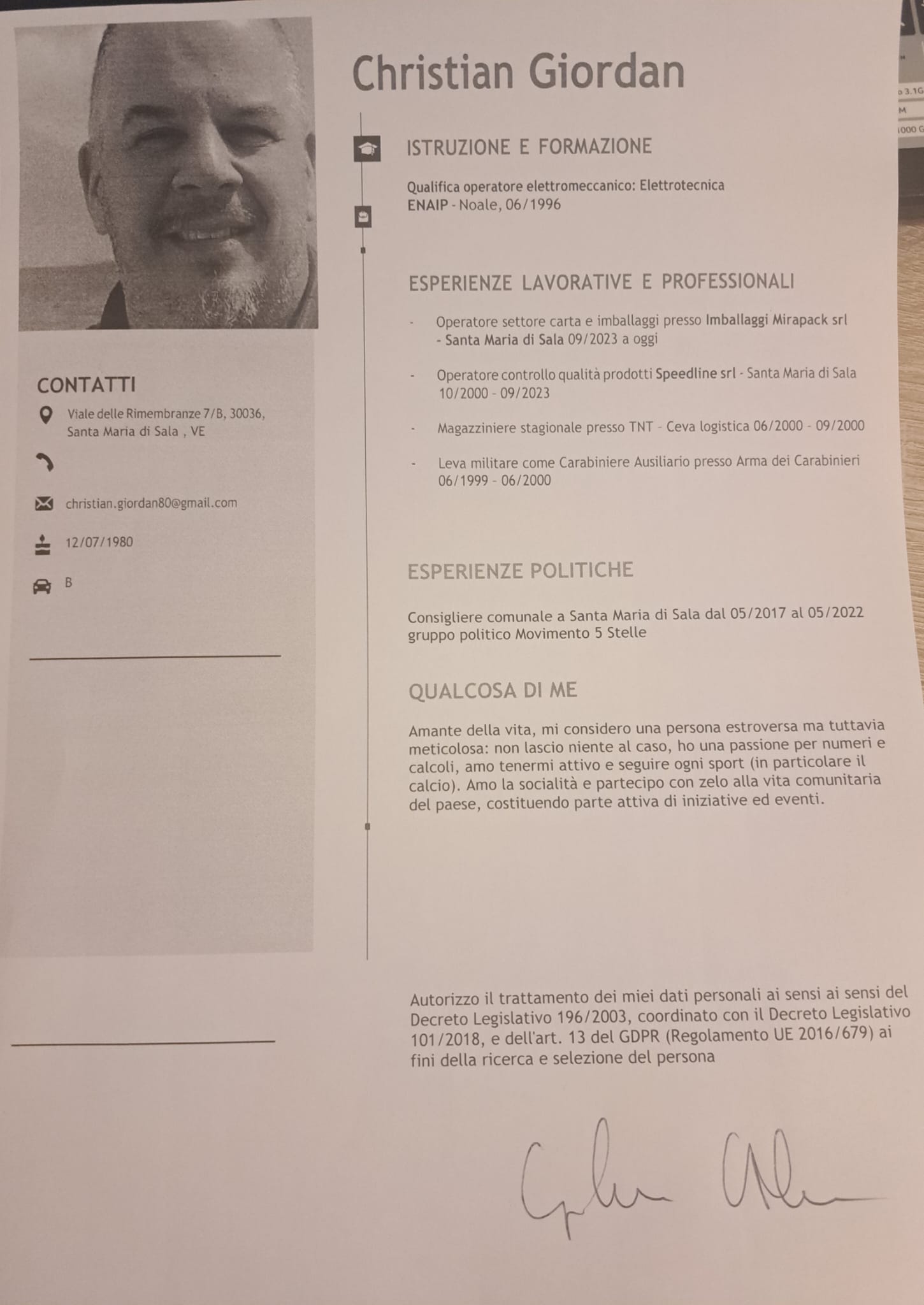 Nato a Milano, ho esperienza come shift manager e operaio nel settore gomma-plastica. Ho a cuore i temi della sicurezza, viabilità e sport